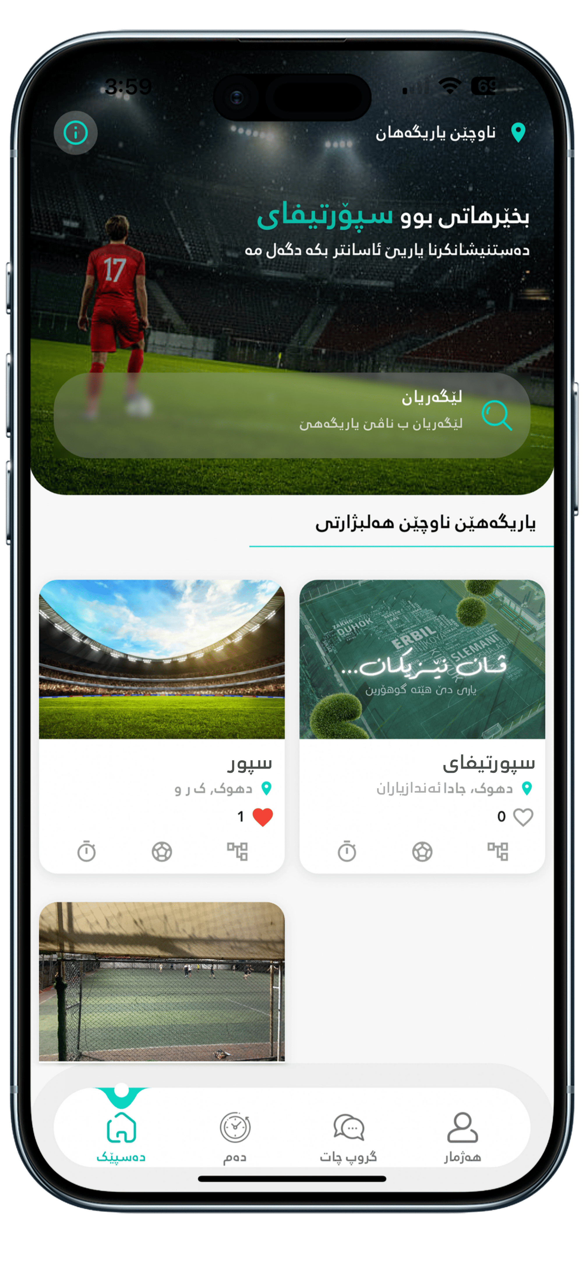 Sportify – ساناهی حجز کرنا یاریگەهێن وەرزشی ل کوردستانێ.